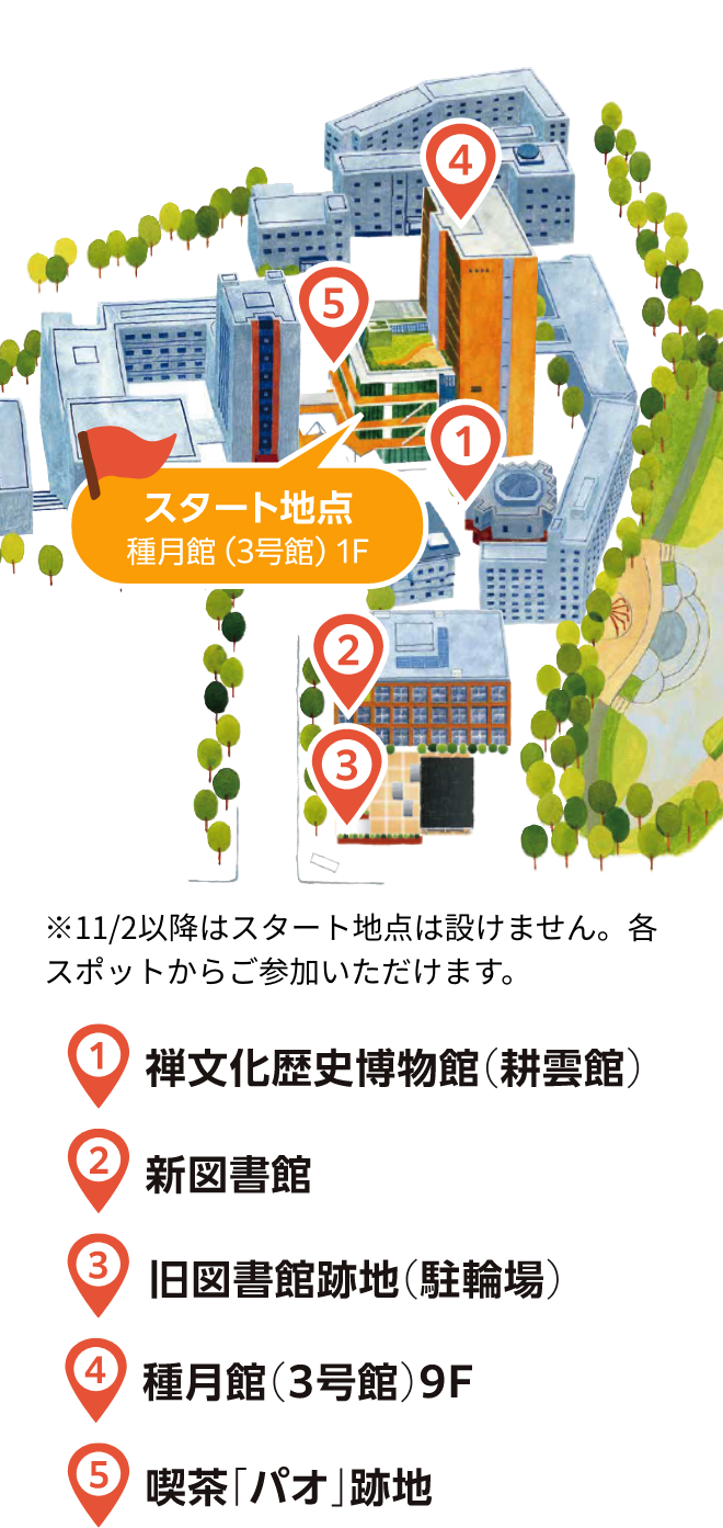 また、11月1日当日・駒澤大学同窓生の皆さまは、コンプリート後に受付に戻ると、オータムフェスティバル模擬店で使える割引チケットがもらえます!コンプリートした画面と配布チラシの半券をスタッフに提示してください。