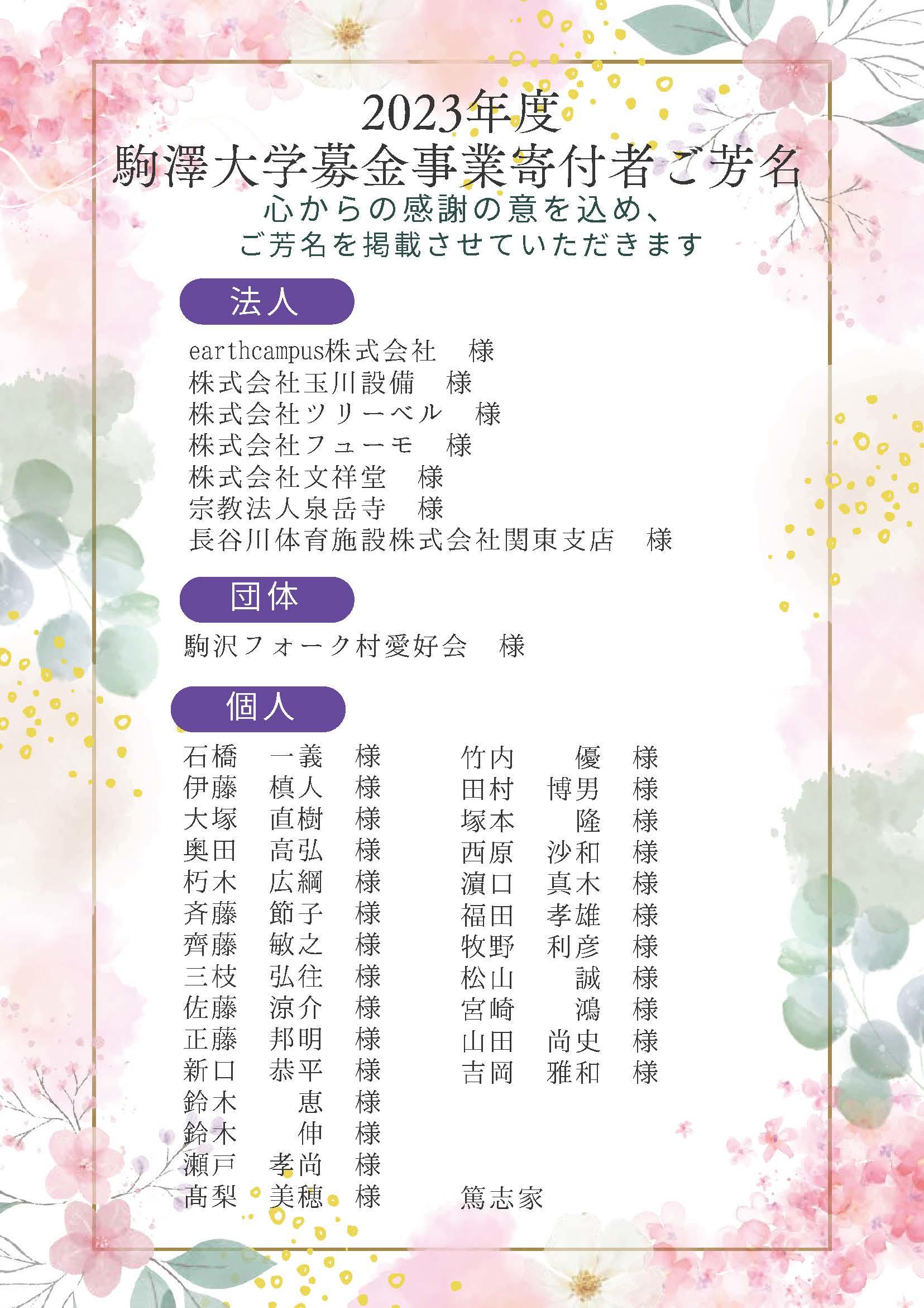 ①2023年4月1日以降、駒澤大学募金事業にご支援いただいた方(匿名希望者除く)を掲載しています