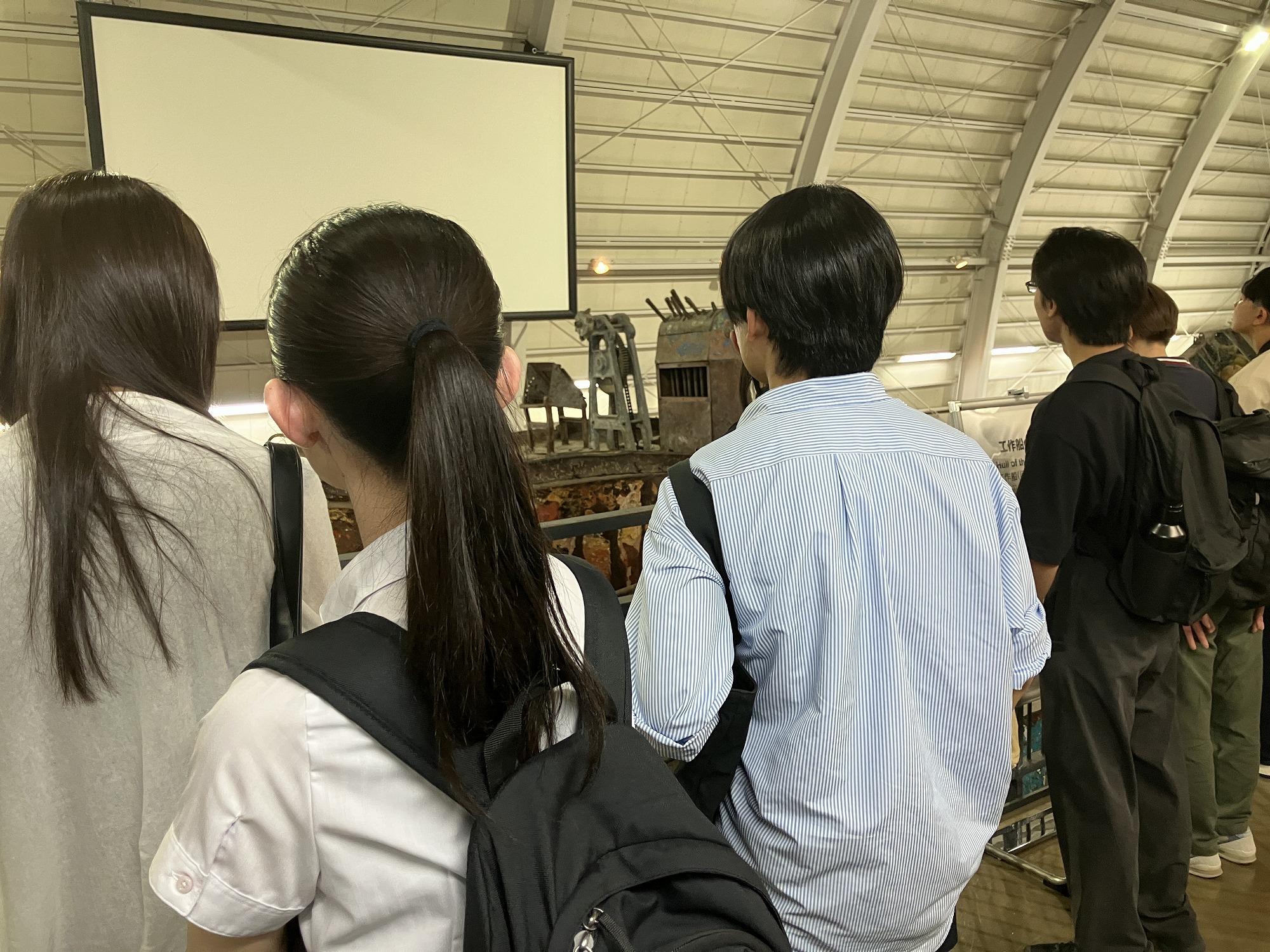東京湾海上交通センター見学の後は、場所を海上保安資料館横浜館に移し、平成13年九州南西海域工作船事件で自爆した北朝鮮工作船を見学しました。