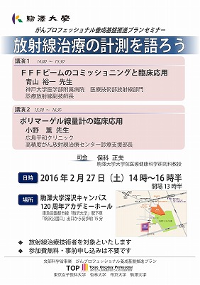 【放射線治療技術者対象】がんプロフェッショナル養成基盤推進プランセミナー開催