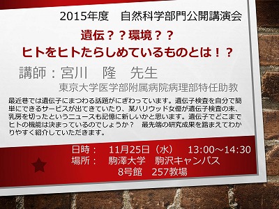 | 2015年度第2回 自然科学部門 公開講演会 | |