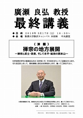 文学部歴史学科「廣瀬良弘教授 最終講義」