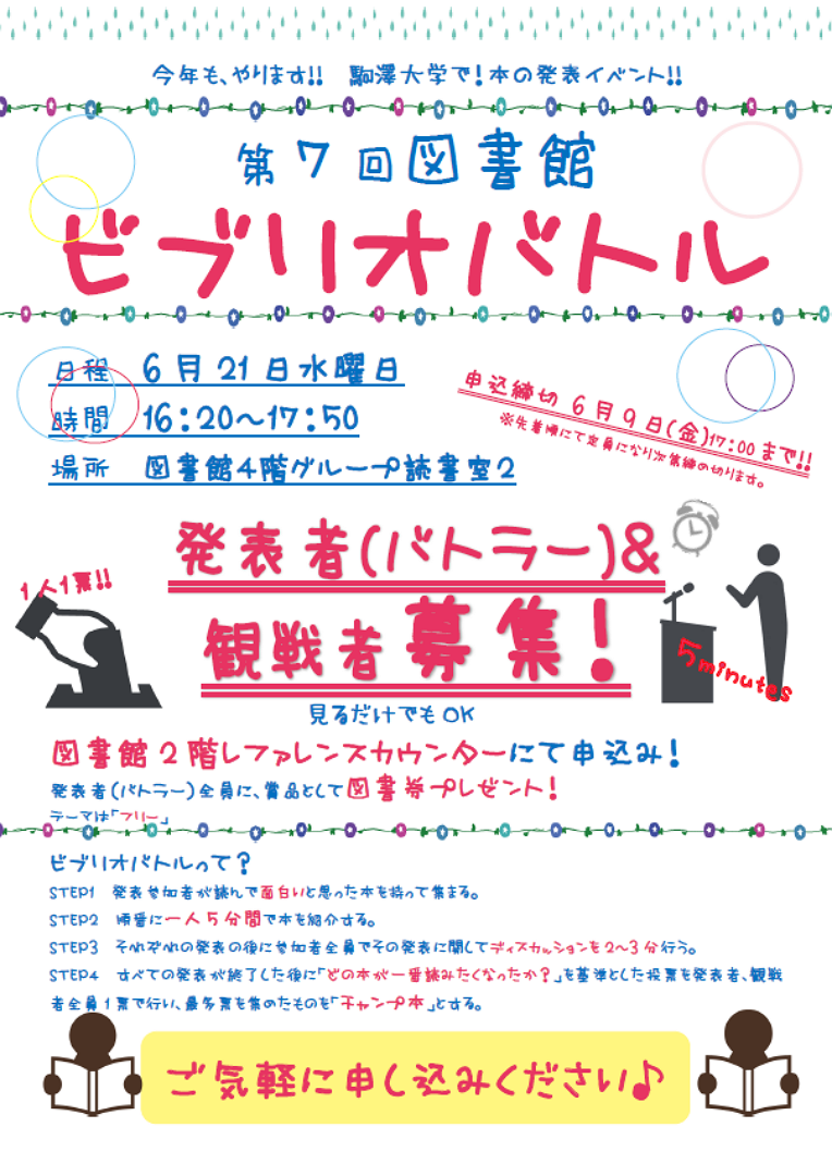 第7回駒澤大学図書館ビブリオバトルを開催します。