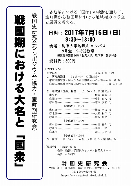 | テーマ | 戦国期における大名と「国衆」 | ||
