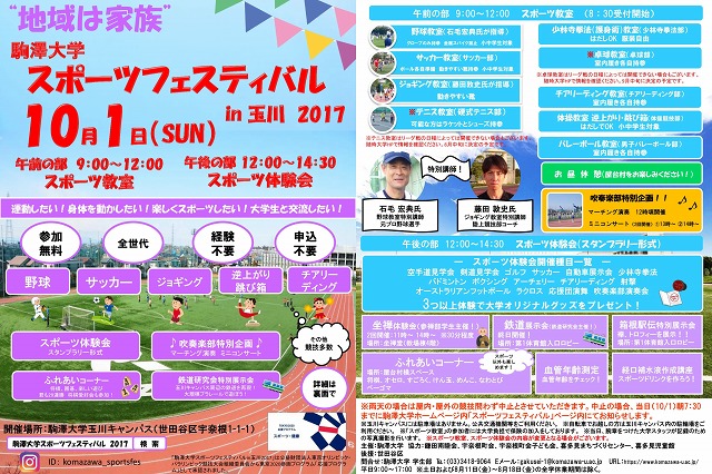 詳細は「スポーツフェスティバル in 玉川 2017」をご覧ください。
