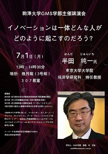 | 講 師 | 半田 純一 氏(東京大学大学院 経済学研究科 特任教授) |