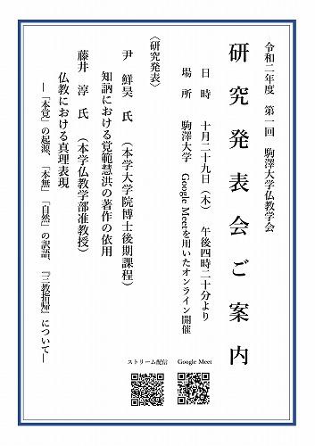 2020年度第1回駒澤大学仏教学会 研究発表会