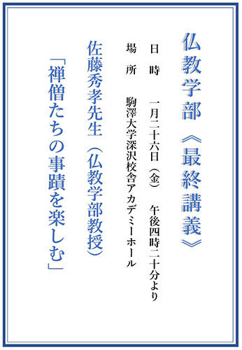 仏教学部 佐藤 秀孝 教授最終講義のご案内