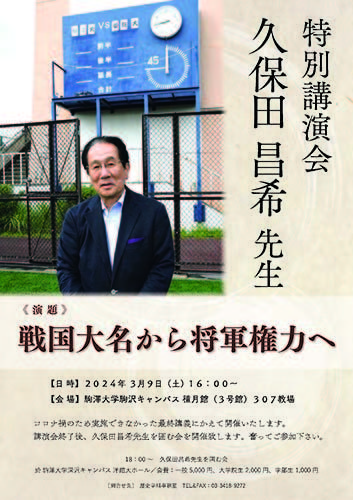 | 久保田昌希先生特別講演会「戦国大名から将軍権力へ」 | |