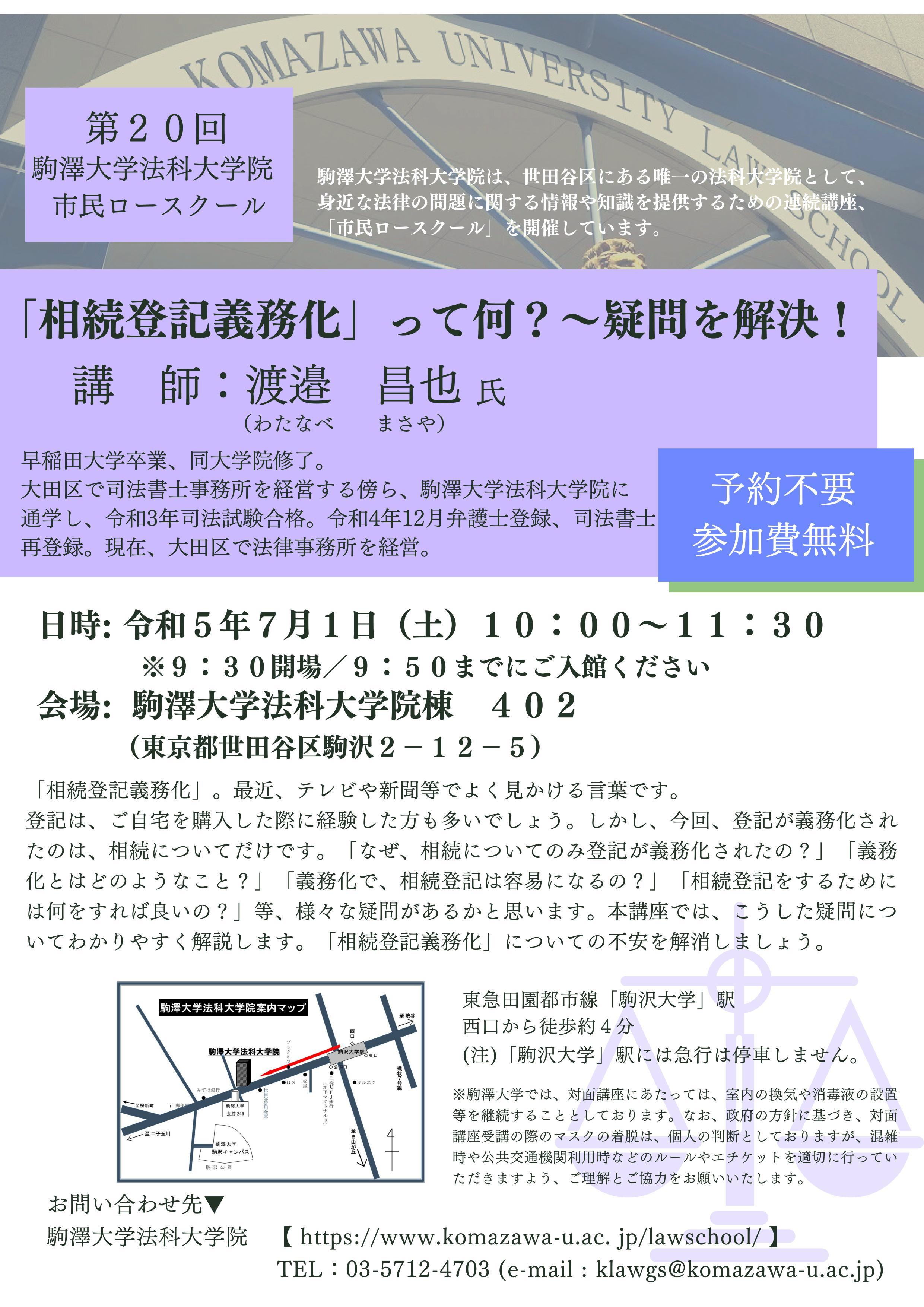 | 第20回市民ロースクール「「相続登記義務化」って何?~疑問を解決!」 | |