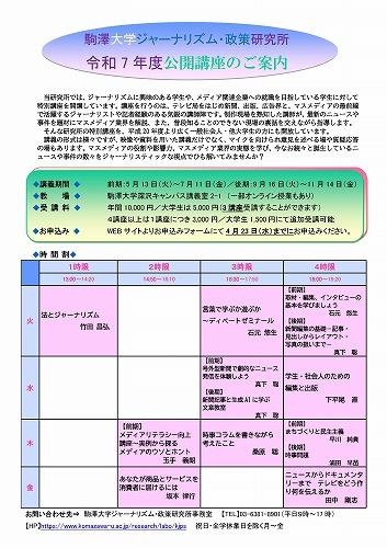 駒澤大学ジャーナリズム・政策研究所 令和7年度公開講座のお知らせ