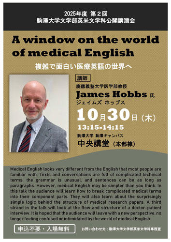 令和7年度 駒澤大学英米文学科主催 第2回公開講演会のお知らせ(162KB)
