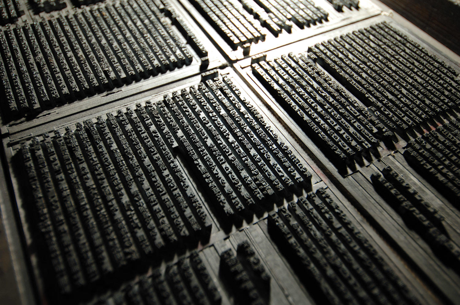 活版印刷では、1文字1文字が独立した活字を最小の単位とします。この活字を組み合わせて印刷の版面とします。
