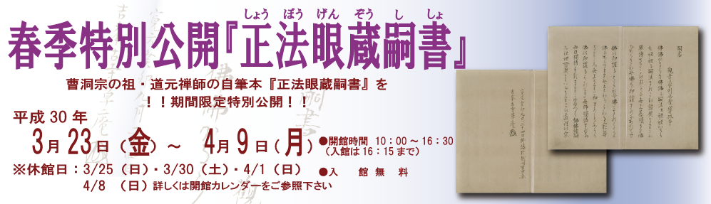春季特別公開「正法眼蔵嗣書」2018.3.23~4.9