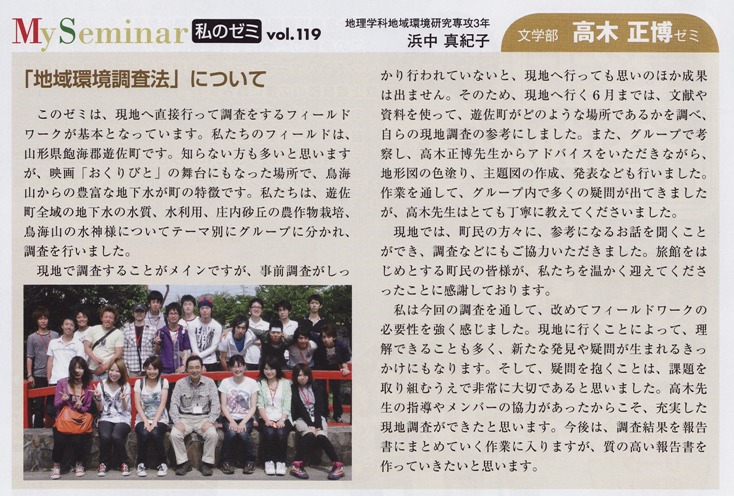 「学園通信」第289号(2009年10月15日)掲載の「私のゼミ」