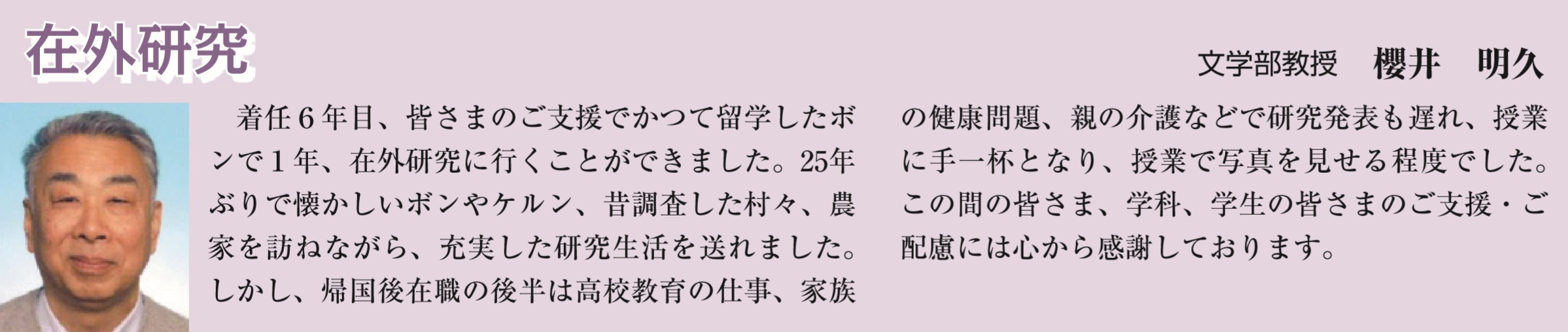 櫻井先生の在職中の思い出が、学園通信に掲載されました(掲載が遅れ、失礼しました)。