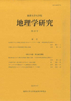 『駒澤大学大学院地理学研究』第49号が、2021年6月に刊行されました。目次は次のとおりです。