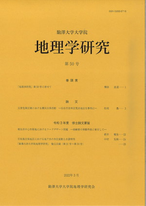 『駒澤大学大学院地理学研究』第50号が、2022年6月に刊行されました。目次は次のとおりです。
