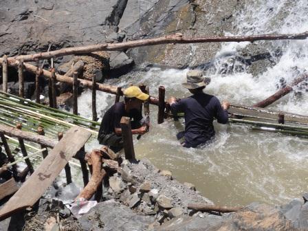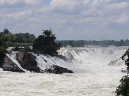5月15日から、イサーン(東北タイ)のトップ校であるコンケン大学を拠点として、在外研究を始めました。コンケンには毎年何回か来ていますが、田植えの季節に来たのは久しぶりです。タイでは、今年の夏(3,4月)は大雨の降る異常気象だったようですが、もともと降水量の少ないイサーンでは、大きな被害は出なかったようです。灌漑の整った二期作地帯では、穂の色づき始めた黄色い田と、緑の鮮やかな苗代、そして耕起の準備に入った赤土の田がパッチワークのように錯綜し、カラフルな景色を見せています。 さて、出発が遅れたため、駒澤大学の皆さんにご迷惑をおかけしましたが、コンケン大学でも5月末からは新年度の授業が始まったので、共同研究者であるセクサン先生との最初の調査もあわただしいものになりました。15日夜、アパートに荷物を置くと、翌朝にはラオス南部に向かうことになり、イサーン南東部にあるウボン大学の歴史の先生と合流して、ラオスのチャンパーサック県に入りました。今回の在外研究の研究対象地域はメコン川の中流域ということになっています。メコン川は、北タイゼミの活動地にも近いゴールデントライアングルから下流を、大部分がタイとラオスの国境として流れますが、一部では国境を離れてラオス国内を流れます。それらの地域にタイの主権が及ばなくなったのは、1904年のフランスとの条約締結以後のことですから、100年ほど前のことにすぎません。もともと自然的にも文化的にもタイと連続している地域ですし、現在、ASEAN内部でのヒトやモノ、おカネの流れが国境を越えて活発になっていることから、それらの地域とタイとの結びつきはますます強まっています。その辺りのことを少し勉強してみるのも、今回の在外研究の目的の一つです。 調査の詳しい報告は別の機会にゆずりますが、ここではその時の調査で訪れたコーンの滝の写真を掲載しておきます。メコン中流域は、安定的な比較的古い地塊の上に広がっており、ケスタやメサなどの地形が見られる地域です。メコン川の中にも、岩礁や瀬がいくつもあって、船の航行の妨げになってきました。それがイサーンの開発を遅らせた理由の一つだったとも言えます。そうした自然的な障害の中で最大のものが、現在のラオスとカンボジアの国境付近にある島々や滝で、写真のコーンパペンの滝はその代表的なものです。まだ雨季に入って間もない時期で、近年の流量減少があるとはいえ、さすがに迫力のある滝でしたが、その激流の中にも簗で漁をしている人々の姿が見られました。 |