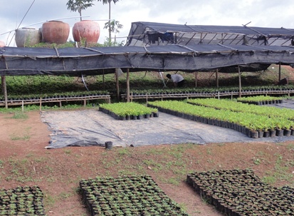 ダンサイからコンケンへの帰路は、東へ向かって標高500m以上の高原地帯をぬける道をとりました。ここはタイ国内でも花卉や果樹の園芸地帯として有名な地域で、タイで最初の本格的なワイナリーとして知られるシャトー・ド・ルーイもダンサイの近くにあります。花卉は業務用鉢物が中心で、クリスマスの季節が最盛期です。最近ではシイタケ栽培も伸びているそうで、栽培品目の多様化が進んでいます。バンコクへの道路事情が改善されて以来、ルーイ県では農業部門の成長により県内総生産の高い成長率が達成されてきました。残念ながら今回は詳しく調べる時間がありませんでしたが、ぜひまたいつか、調査に訪れたいところです。 |