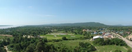 ダンサイから戻ってすぐ、野外調査の指導でイサーン東部に出張することになりました。150年ほど前にラオスから移住してきたソー族の村を調査したのですが、イサーンの少数民族についてはあまり知識がなかったので、むしろ私のほうがよい勉強になりました。厚かましくも、訪問先のコミュニティーラジオ局で生放送に出演してしまうなど、楽しい調査でした。メコン川に日本の協力で架けた橋のあるムクダハンでは、地域の地形的な特徴がよくわかる写真を撮ることもできましたので掲げておきます。ぜひGoogle Earth で、上空からの画像とも合わせてご覧ください。 |