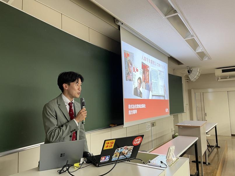 次は、吉田健太郎先生のゼミの卒業生である島方周平さんが登壇されました。島方さんは出版社で月刊誌『致知』の企画、取材、執筆、編集をされています。