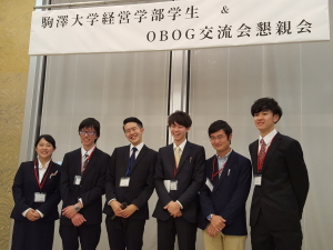 今回、経営学部学生&OBOG交流会(第1、2、3部)を運営してくれた学生スタッフ各班の代表者たち。