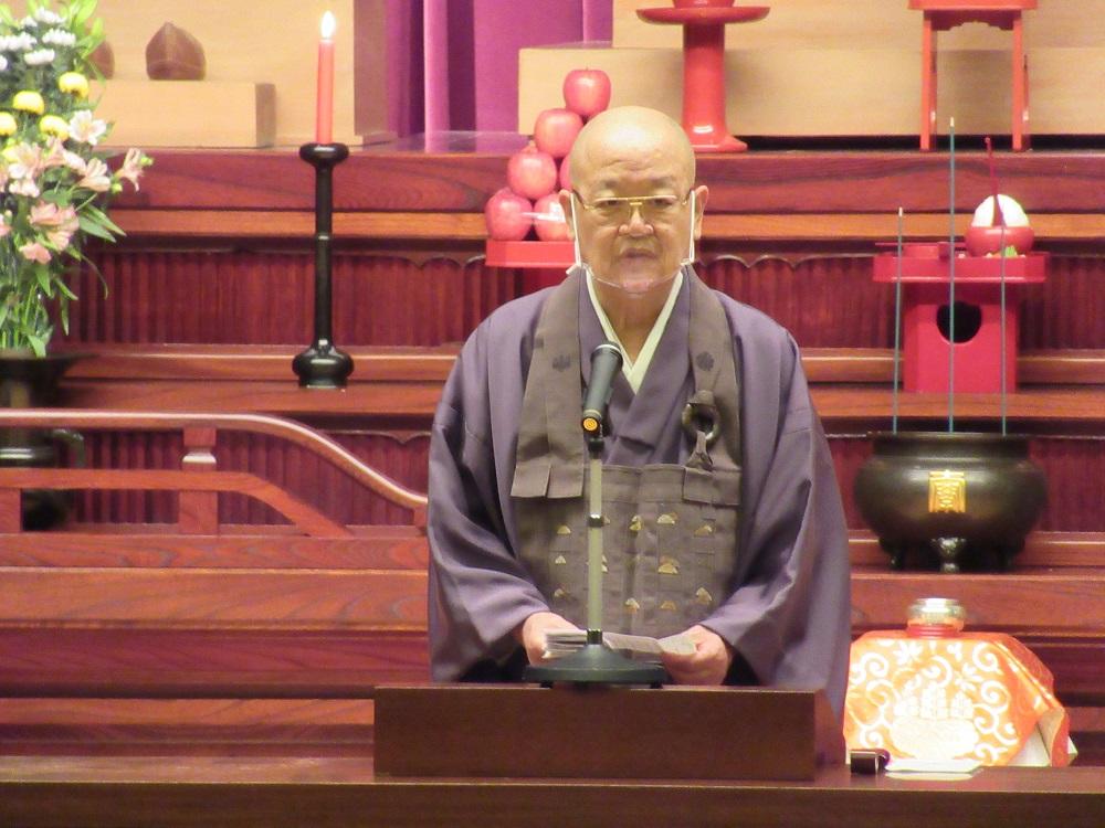 三帰礼文とともに一仏両祖像に礼拝のあと、学長と総長より新入生に向けた挨拶がされました。