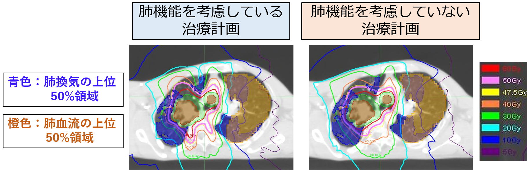 図2 肺機能を考慮した治療計画と考慮していない従来計画の比較