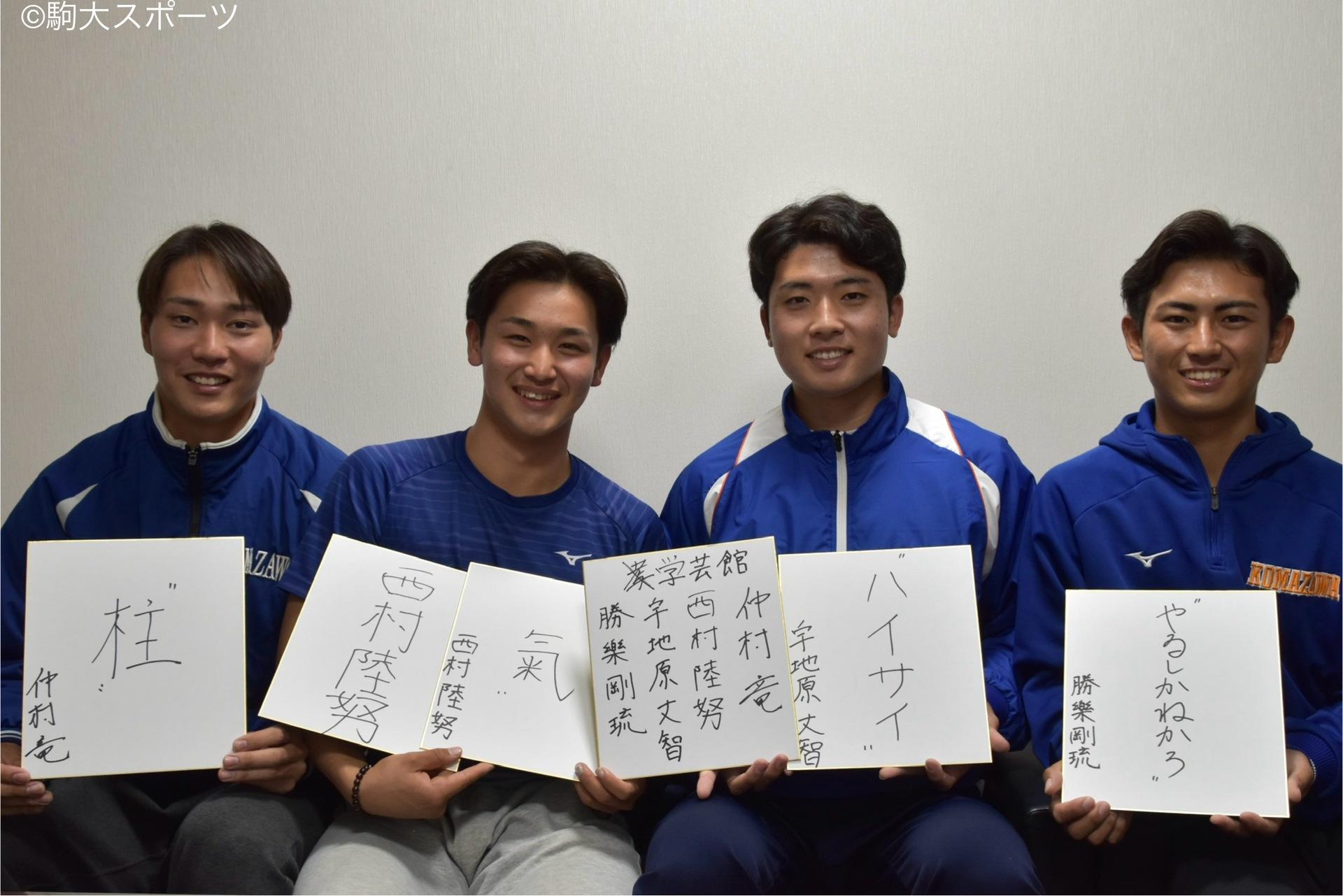 西村「悔いの残るシーズンだった。春の日大戦で3イニング持たず、その他のリーグ戦で投げたものはほとんどいいピッチングができてなかった。この悔しさをバネに冬に練習して春には駒大のピッチャー陣の中心となるような選手になりたい」