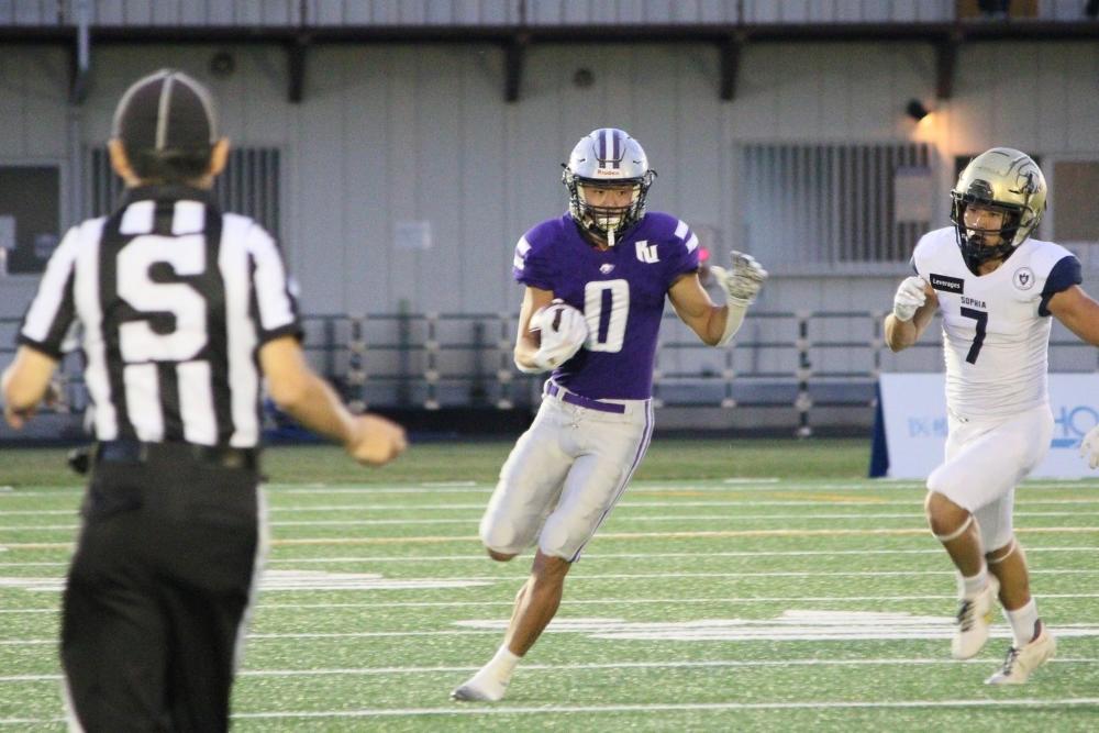 気温約17℃の肌寒い中、上智大のキックで試合がスタート。開始わずか47秒で#3フレドリックスゴードンが73ヤードから俊敏に相手のディフェンスをかわし、そのまま独走で先制TD。さらにその3分後に続けて、#0金山太陽も同じく独走TD。エクストラ・ポイントも成功させ、第1Qで14-0と一気に上智大との点差を離す。
