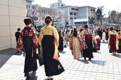 式は23日と24日の午前と午後、計4回に分けて行われ、大学院修了生67人、学部卒業生3,215人の合計3,282人が本学を巣立ちました。晴着に身を包んだ卒業生らは恩師や友人と語らい、別れを惜しんでいました。
