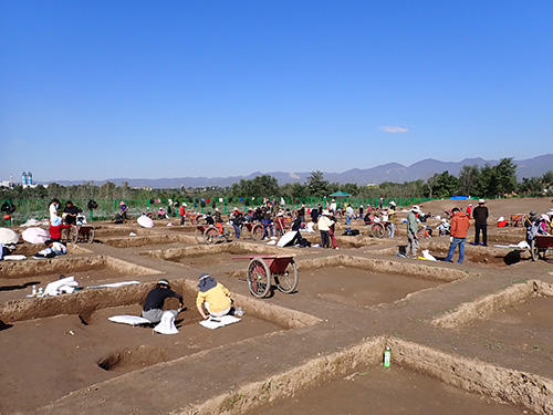 本学学生と北京大学の3年生、大学院生が議論を重ねながら、共同で周原遺跡の発掘調査を実施しました。